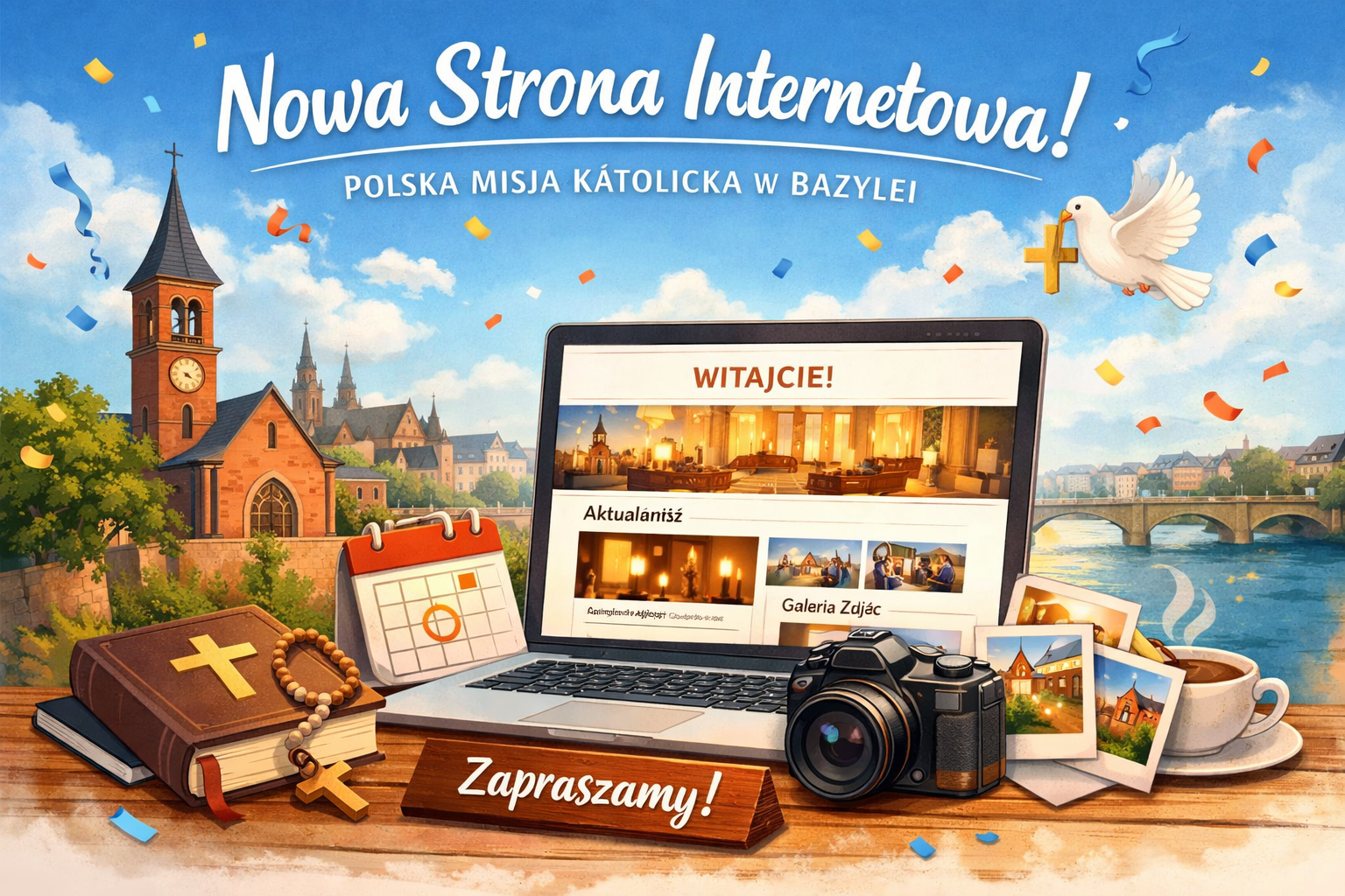 Zobacz więcej →: Witamy na naszej nowej stronie internetowejDrodzy, z radością informujemy, że uruchomiliśmy nową stronę internetową Polskiej Misji Katolickiej w Bazylei 🎉Ma ona ułatwić szybki dostęp do najważniejszych informacji o naszej wspólnocie. Co już teraz znajdziesz na stronie? ✅ Aktualności – ogłoszenia, informacje o wydarzeniach i ważne komunikaty✅ Sakramenty w Misji – plan Mszy Świętych, spowiedzi oraz nabożeństw✅ Kontakt – dane kontaktowe…